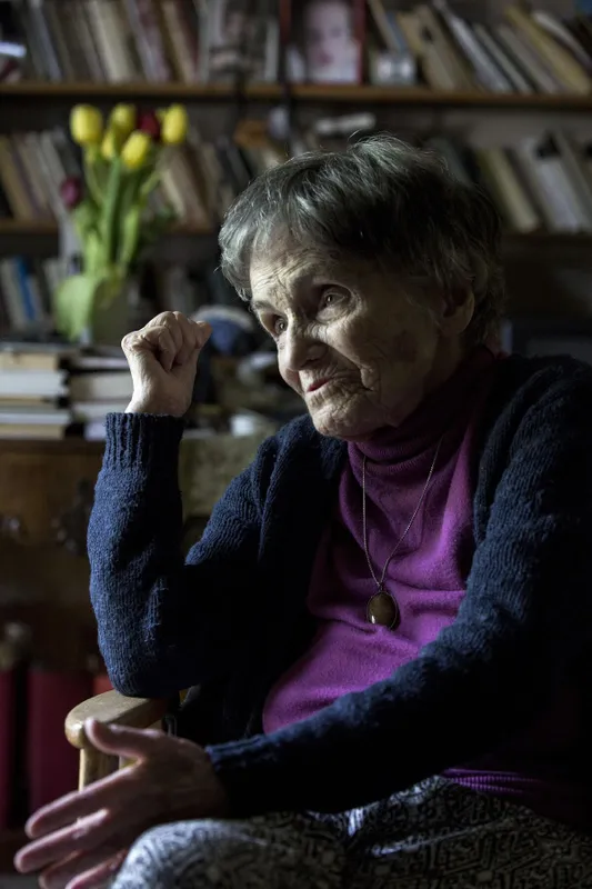– Nem szép kor. Sok. Sosem gondoltam volna, hogy ilyen sokáig fogok élni. Most is, mint eddig, sokat olvasok; e-könyvet, mert jó nagyok rajta a betűk. Most például a Huckleberry Finnt. Szerencsére nem vagyok magányos, a fiammal mindennap beszélek, és itt vannak a barátaim. Mónika [Mesterházi Mónika költő] legalább hetente kétszer meglátogat, és felolvassa, amit nem tudok feltenni az e-könyv-olvasóra. Továbbá Juli [Lázár Júlia költő], akinek egy időben a pótmamája voltam. Ő is rendszeresen eljön hozzám és mások is. Igaz, már nem tudok kirándulni az unokáimmal, nem járunk a Várba, a Tóth Árpád sétányra, ahol olyan remekül föl lehetett mászni az ágyúkra. Már nem lehet velük a szőnyegen ülve doktorost játszani az állatokkal (tapír, pozsonyi lovacska, nyuszi), amit később a dédunokáimmal is megismételtünk. Most már maradnak a Lóci-versek, a Bors néni, és a Négyszögletű Kerek Erdőt is be lehet járni, ha már nem jutunk el a Széchenyi-hegyre…
