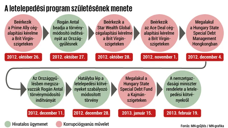 Rogán Antal még az Országgyűlés gazdasági bizottságának fideszes elnökeként 2012. október 27-én nyújtotta be a harmadik országbeli állampolgárok beutazását és tartózkodását szabályozó törvény módosító indítványát a parlamentnek. Egy nappal korábban, október 26-án a Karib-tengeren lévő adóparadicsomban, a Brit Virgin-szigeteken valaki cégjegyzési kérelmet nyújtott be. Az újonnan létrejövő vállalkozás a Prime Ally Limited nevet kapta. Miközben Rogán módosító indítványa csak egy napja pihent a magyar parlament aktái között, újabb céget alapított valaki Star Wealth Global Limited néven, szintén a Brit Virgin-szigeteken, majd november 1-jén még egyet, az Ace Deal Investments Limitedet, ezt is az adóparadicsomnak számító szigetországban. Ez a három társaság a végső tulajdonosa a gazdasági bizottságtól kötvényforgalmazási engedélyt kapó, kajmán-szigeteki Hungary State Special Debt Fund (HSSDF) nevű vállalkozásnak.