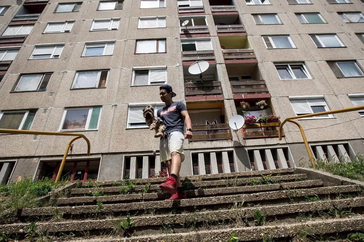 – Nagyon szép a kilátás, én imádom! Azt pedig abszolút ellenzem, hogy visszabontsák. Nem tudom, mi lenne velünk, mert a lakást hitelből vettük, és rendben van, hogy kifizetik nekünk az árát, de azzal számolnak, hogy a pénzre a bank egyből ráteszi a kezét? Mert most közel ugyanannyi hitel van rajta, mint amennyit ér – mondja Mini, aki családjával az ominózus paneltömb legfelső szintjén lakik. Számítása szerint a különbözet 1,5 millió forint, annyi maradna nekik. Abból lakást venni nem lehet, de még egy másik hitel önerejére sem lenne elég. Családi házra pláne nem telne, hiszen míg a városban 6-8 millióért lehet panelt kapni, addig a házakat 10-12 millióért árulják.