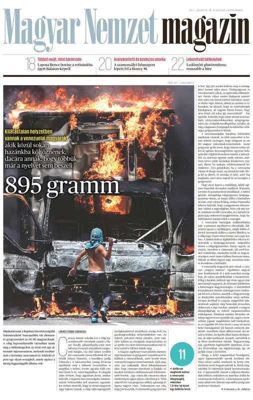 Kilátástalan helyzetben vannak a venezuelai magyarok, akik közül sokan hazánkba költöznének, dacára annak, hogy többük már a nyelvet sem beszéli (17., 21. oldal)