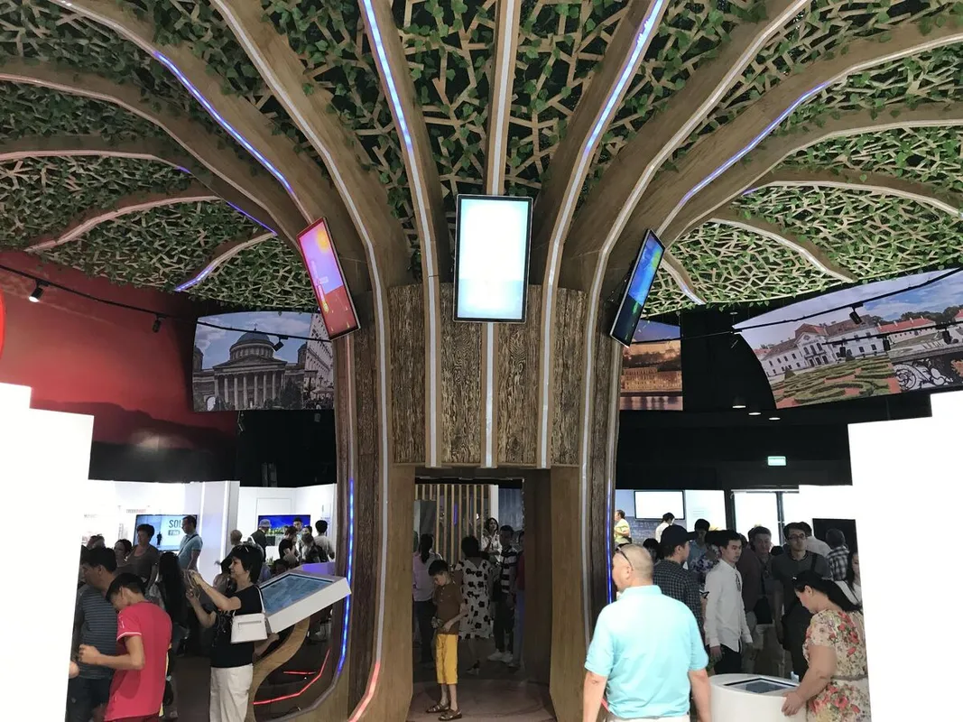 Érdekes végignézni, melyik ország milyen koncepciót választott. Az öböl menti királyságok azt akarták megmutatni, mennyire gazdagok: minden csillog-villog, de alig van tartalom. A fehéroroszok boltot nyitottak, ahol nejlonharisnyát árulnak és a hokiválogatott mezét. A szerbek úgy döntöttek, hogy kisütik a betérő vendég retináját: a bejáratnál vakító neonfolyosón kell bemenni, hogy aztán bent alig lássunk valamit a derengésben. Természetesen megnéztem volna a házigazdák pavilonját is, amely az egész expóterület közepén egy hatalmas, többemeletnyi gömb. Értelemszerűen ott állt a leghosszabb sor, és miután megtudtam, hogy több mint egy órát kellene várakoznom a tűző napon, a haminc-egynéhány fokos kánikulában, letettem az ötletről.