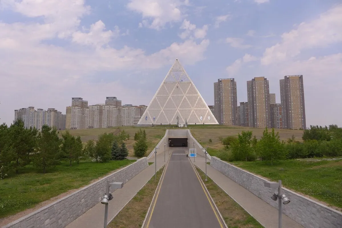 A „béke és egyetértés” palotája egy piramis. Az egyik legnevesebb londoni építésziroda, a Foster and Partners tervezte, de nem hinném, hogy annyira büszkék lennének rá. A bitang nagy épület azt a célt szolgálja, hogy a legfelső szintjén időnként összegyűljenek tanácskozásra a világ vallási vezetői, a föld valamennyi összeesküvéselmélet-hívőjének nagy örömére. Na ugye, mondhatják ilyenkor, miközben a vallási vezetők gyorsan emelkednek a magasba a gúla alakú épület élein srégen közlekedő liftekkel.