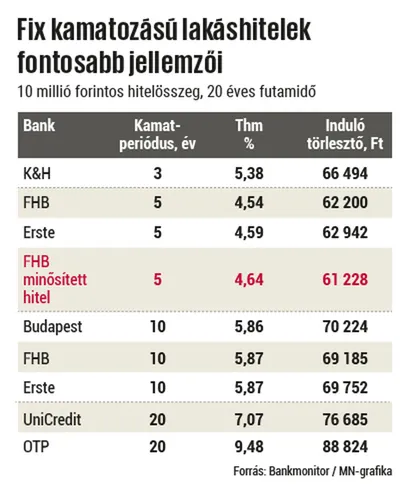 Örülhetnek a lakásvásárláson gondolkodók, mert 2017-ben hónapról hónapra csökkent a lakáshitelek teljes hiteldíjmutatója (thm). Újdonságként pedig megjelent az FHB jegybanki minősítést elért fogyasztóbarát lakáshitele is. Érdekes módon ugyanakkor ez a húszéves futamidőre nyújtott, tízmillió forintos összegű, fogyasztóbarát kölcsön nem a legolcsóbb, hiszen 4,64 százalékos thm-jével csak a harmadik az ötéves kamatperiódusúra nyújtott hitelek sorában. A bank tízéves kamatperiódusra kínált fogyasztóbarát lakáskölcsöne a dobogóra sem fér föl. Kamatozását tekintve ugyan listavezető, egyéb magas költségei miatt azonban csak a negyedik legkedvezőbb költségű hitel – olvasható a Bankmonitor elemzésében. A fogyasztóbarát minősítés jelentősége nem annyira a költségek csökkentésében áll, hanem inkább abban, hogy a feltételek egységesítésével sokkal könnyebben összehasonlíthatóvá válnak ezek a kölcsönök – nyilatkozta lapunknak az ügyben Sándorfi Balázs, a Bankmonitor.hu elemzője.