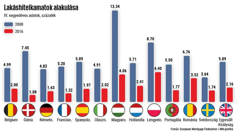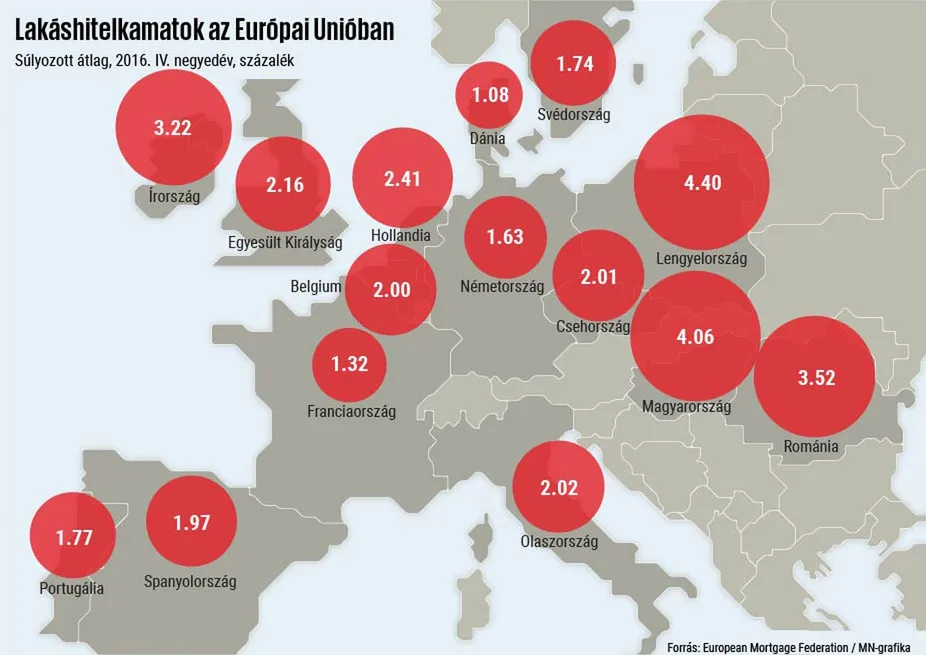 Az olvasók számára talán már nem is számít meglepetésnek az, ha még egy terméktípusról kiderül, hogy európai összehasonlításban idehaza kaphatjuk meg legmagasabb áron, így járunk a lakáshitelekkel is. 2017-re a magyar piacon elérhetővé váltak a 2-3 százalék között futó hitelek, de a lakáshitelkamatok átlagait tekintve ezek még mindig magasnak számítanak Európában.