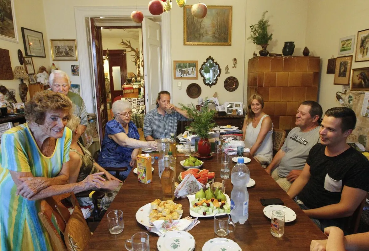 – Ó, az semmiség volt! Bár fiatalabb lennék, akkor tudtam volna igazán is segíteni – szabadkozik Erzsike, aki 1995 óta lakik a házban, és az udvar elkészültekor saját költeményével ajándékozta meg a közösséget. – Volt egy kis kitérő az életemben. Látogatóba mentem az Egyesült Államokba a testvéremhez, de egy szerelem miatt tizenegy évig maradtam – mesél tovább az életéről Erzsi néni, de további részleteket nem árulhatunk el, az már az asztaltársaság titka marad.
