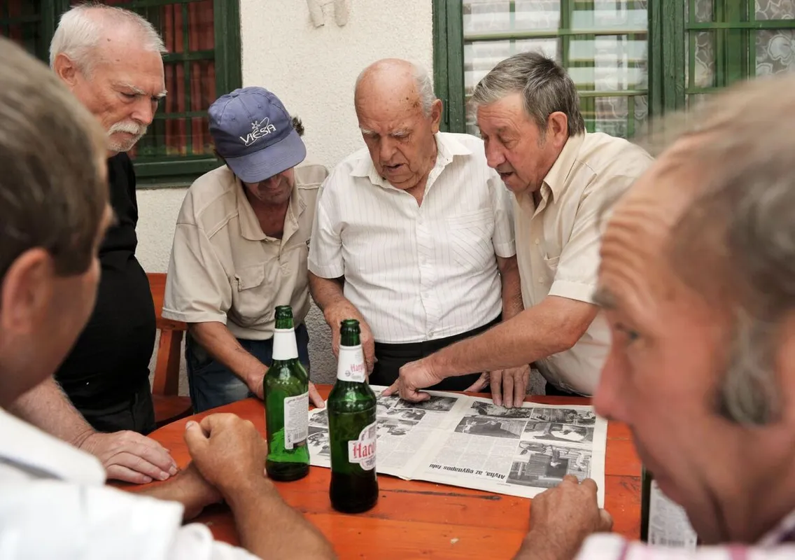 Egyébként a kocsma is megváltozott. Új tető került rá, szemet bántóan piros egyencserepekkel, és az ereszt annyira kinyújtották, hogy az asztalok beférjenek alá. Hamar megértem a praktikumát: amikor a pultosnő háromnegyed kettőkor elkiáltja magát, hogy mindjárt bezár, a törzsvendégek gyorsan rendelnek maguknak két-három sört, a bátrabbak kísérővel. A tartalék italok arra valók, hogy akkor is legyen mi mellett beszélgetni, amikor a bolt ajtaját lelakatolják; a teraszon nyugodtan ott maradhatnak az üres üvegek, hétfő reggelig nem viszi el senki.