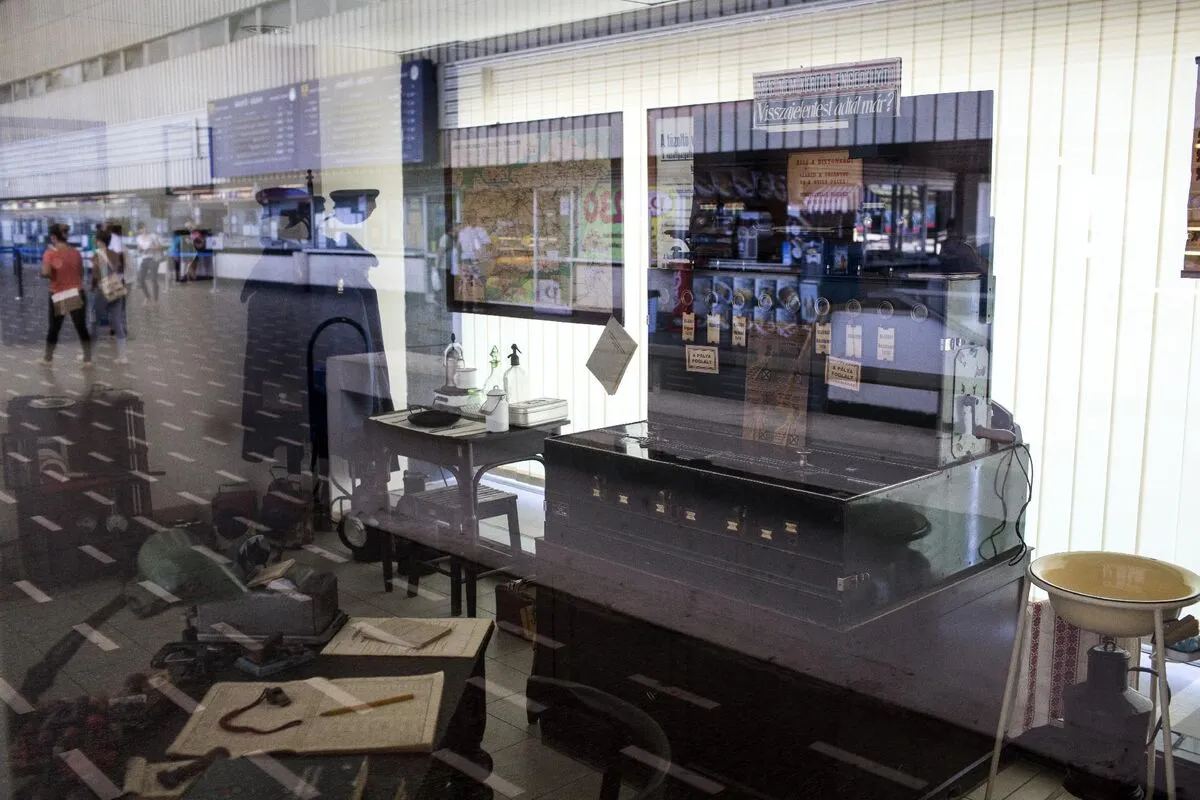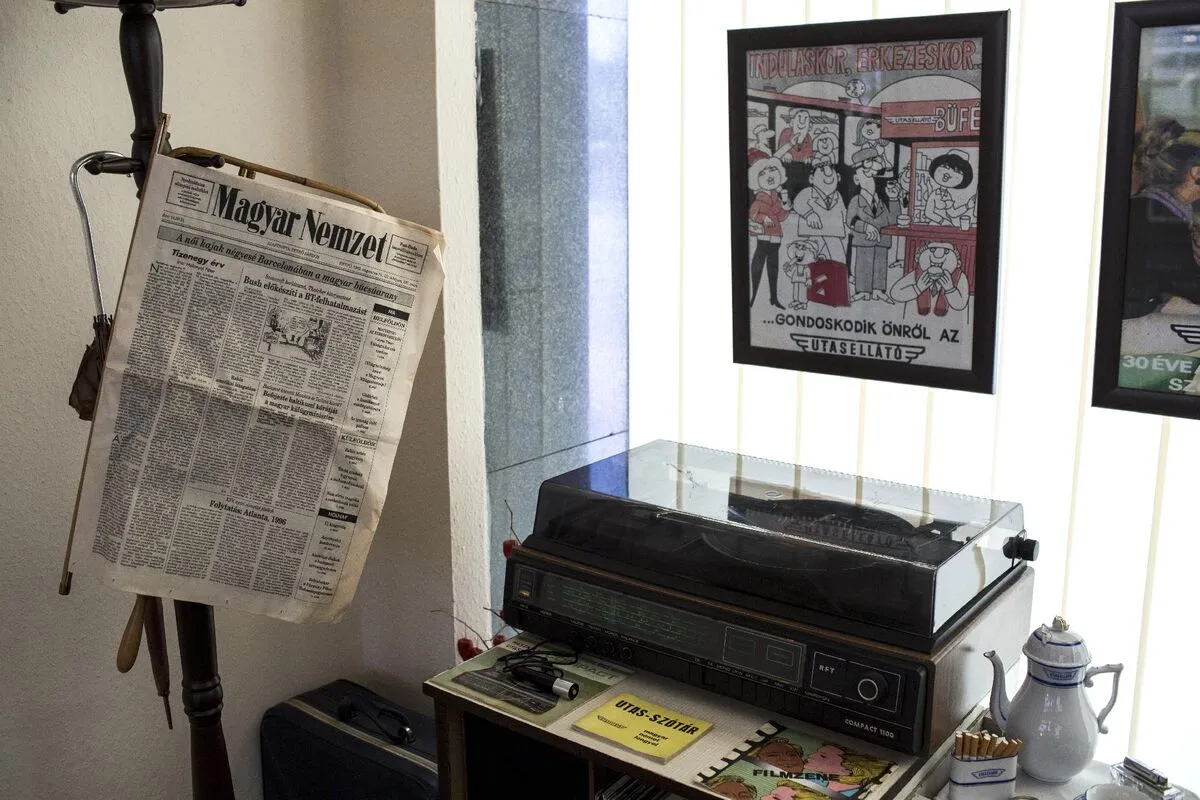 Döbbenet. Ez látszik a járókelők arcán, ha megpillantják a szolnoki vasútállomás üzletsorának helyén kialakított vasúti almáriumot. Magunk is elcsodálkoztunk, amikor a nyolcvanas-kilencvenes éveket idéző utasellátóban üldögéltünk egy valamikori büfékocsi barnás csíkozású eredeti ülésein, az üvegfal másik oldalán. A kiállítás négy tökéletesen berendezett kirakat. Az első egy hetvenes-nyolcvanas évekbeli távírda, a második forgalmi iroda az ötvenes-hatvanasokból, a harmadik valóságos kis ékszerdoboz: személypénztár a harmincas-negyvenes évekből, az utolsó pedig az utasellátó, amelynél a járókelők időnként értetlenül és szomorúan veszik tudomásul az ajtóra kifüggesztett „Zárva” felirat üzenetét. Merthogy minden adott ahhoz, hogy nyitva legyen. Ahogy a többi helyiség is azonnal használatba vehető lenne, annyira a helyén van bennük minden.