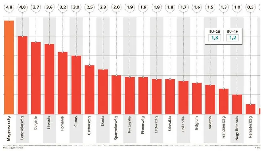 Az Európai Unióban messze a leggyorsabb növekedést érte el a magyar gazdaság a harmadik negyedévben – derült ki az Eurostat adataiból. Éves összevetésben az első, míg negyedéves összehasonlításban Lengyelország mögött a második helyen áll hazánk. A Központi Statisztikai Hivatal tegnap tette közzé, hogy a vizsgált időszakban a nyers adatok szerint öt, a kiigazított számok szerint pedig 4,8 százalékos volt a növekedés az előző év azonos időszakához viszonyítva. Ehhez az ipar, az építőipar és a piaci alapú szolgáltatások járultak hozzá a legnagyobb mértékben.