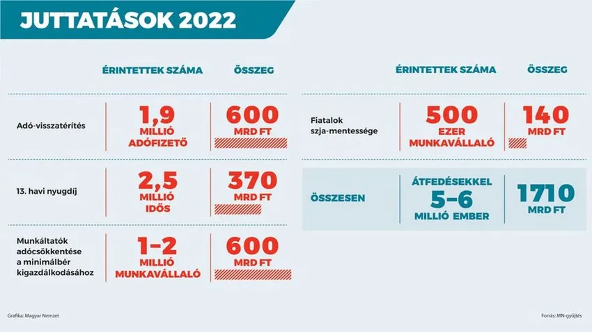 – Valóban. A következő hónapban megkezdődik például a családi adó-visszatérítés kifizetése. Ilyen kormányzati intézkedés még nem volt Magyarországon, ennek részeként csaknem kétmillió szülő kap vissza több mint 600 milliárd forint befizetett adót. Ezzel egy időben, február közepén vehetik kézhez a nyugdíjasok a teljes összegű 13. havi juttatást, ami 370 milliárd forintot jelent 2,5 millió nyugdíjasnak.