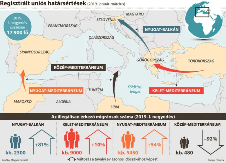 Az unió határvédelmi szerve, a Frontex adatai szerint a török hatóságok aktivitása ellenére az előző év azonos időszakához képest 2019 első negyedévé-ben tíz százaléknál többen, több mint kilencezren jutottak át a bolgár–török és bolgár–görög határon. Január óta az EU többi határszakaszán is fokozódott a migrációs nyomás, egyedül a Közép-Mediterráneumban, vagyis a Líbia–Olaszország tengeri útvonalon esett vissza drasztikusan a forgalom, ami kizárólag az olasz kormányváltásnak köszönhető. A 2018-ban felállt kabinet ugyanis Matteo Salvini belügyminiszter kezdeményezésére lényegében lezárta a kikötőit a különféle nem kormányzati szervezetek migránsokat szállító hajói előtt.