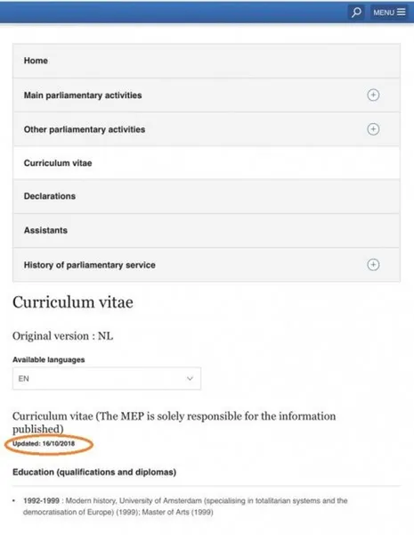 Az mindenesetre biztosnak tűnik, hogy az ún. Sargentini-jelentésről szóló szavazást követően elindult egy módosítási hullám a leköszönő EP képviselő végzettségére vonatkozó adatok tekintetében.