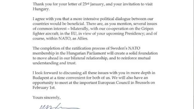 Svédország állami televíziója osztotta meg a svéd miniszterelnök, Ulf Kristersson válaszát arra, hogy Orbán Viktor meghívta Magyarországra azzal a céllal, hogy a felek megtárgyalják a skandináv állam NATO-csatlakozásának kérdését – számolt be róla a Mandiner.