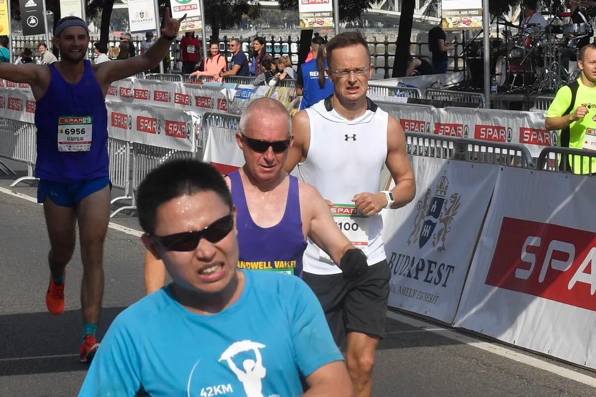 „Azt a hibát szokták elkövetni az első maratont futók, hogy az első félmaratont jól meghúzzák, általában az egyéni csúcs közelében, 1:32 lett a fele. Addig élveztem, utána pedig csak a kínszenvedés volt, úgyhogy bizonyítottam azt, hogy jól tudják itt a nagy öregek, az első maratonisták azok mindig itt rontják el” – mondta Szijjártó Péter, külügyminiszter, aki kicsivel kevesebb mint 3 óra 27 perc alatt ért célba.