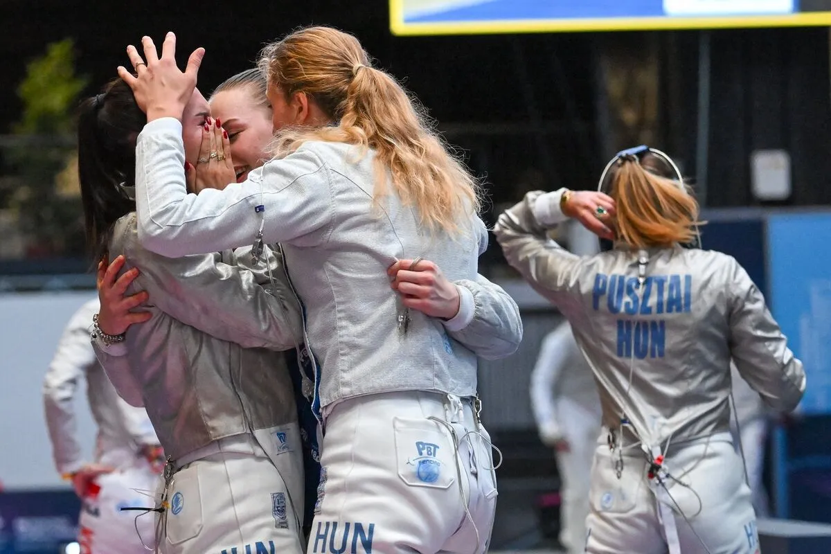 A Pusztai Liza, Battai Sugár, Szűcs Luca, Márton Anna összeállítású válogatott kiemeltként a 16 között lépett először pástra szombaton, amikor 45-39-re verte a lengyeleket. A már vasárnapi negyeddöntőben 45-35-re nyert a görögök ellen, akiknél ott volt az egyéni verseny ezüst- és egyik bronzérmese.
