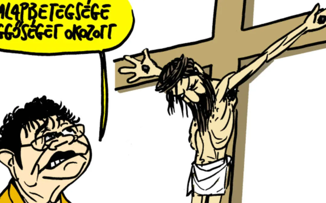 Már akkor botrányokat váltott ki Pápai karikatúrája, amikor április 28-án kinyomtatta a Népszava. A rajzon Müller Cecília tiszti főorvos a keresztre feszített Jézus mellett azt mondja: