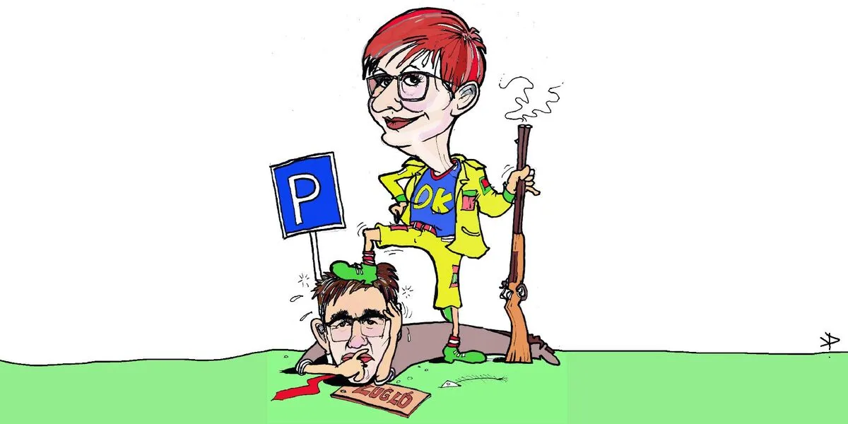 A karikaturista szemével a Kálmán Olga féle politizálást Pósa Károly rajza szemléltette.