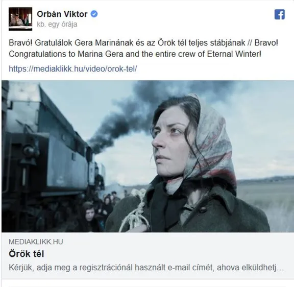 A miniszterelnök Facebook-oldalán gratulált Magyarország első Emmy-díjazottjának, Gera Marinának, aki az Örök tél című filmben nyújtott alakításáért kapta meg a legjobb színésznőnek járó díjat.