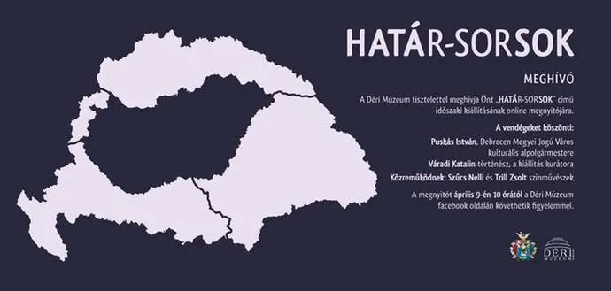 Határ-sorsok címmel új, Trianonhoz kapcsolódó időszaki kiállítást nyitnak meg pénteken a debreceni Déri Múzeumban. Az online megnyitót a múzeum Facebook-oldalán és YouTube-csatornáján pénteken 10 órától követhetik az érdeklődők – közölte a múzeum sajtószolgálata az MTI-vel csütörtökön.